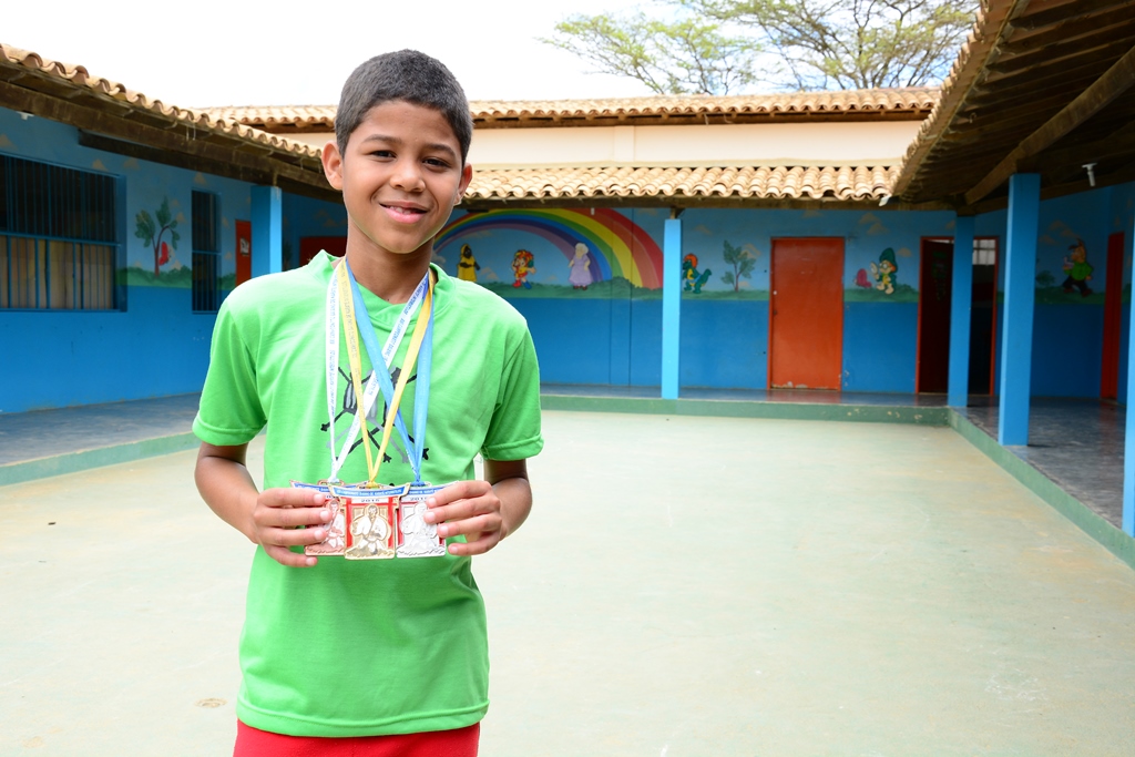 “Ele é um aluno que se destaca e não apresenta nenhum problema de indisciplina. Tem um destaque em tudo o que se determina a fazer. Nasceu para ser um campeão. É um menino que promete, principalmente pelo nível de determinação que tem”, afirma ela.
