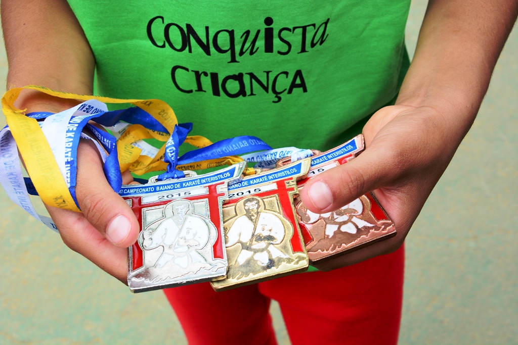 Novas competições – Enquanto esses sonhos não se concretizam, ele continua com suas atividades em tempo integral no Conquista Criança. E, ao mesmo tempo, intensifica os treinamentos com vistas às próximas competições de karatê nas quais quer tentar outras medalhas: primeiro, já no próximo fim de semana, uma em Iguaí – para a qual, aliás, também deverão ir outros colegas do Conquista Criança. E, mais à frente, em novembro, algo maior: o Campeonato Brasileiro de Karatê Interestilos, a ser disputado em Fortaleza.