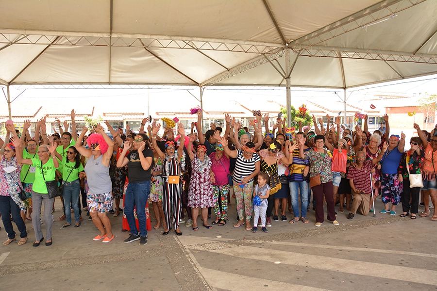 “O baile está ótimo, nunca vi tanta coisa boa. Uma felicidade que eu tenho de estar aqui hoje, representando esses bairros, esses Cras”, disse Maria Helena Santos (58), que integra o grupo de convivência de idosos do Cras Nossa Senhora Aparecida.