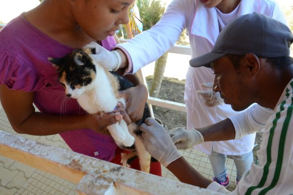 Sobre a raiva – a raiva é uma doença infecciosa viral aguda, que acomete mamíferos, inclusive o homem, e caracteriza-se como uma encefalite progressiva e aguda com letalidade de aproximadamente 100%. Uma das formas de prevenção a esta doença é a vacinação anual de cães e gatos. Ela é eficaz na prevenção da raiva nesses animais, e consequentemente a raiva humana. (Informações: www.saude.gov.br)