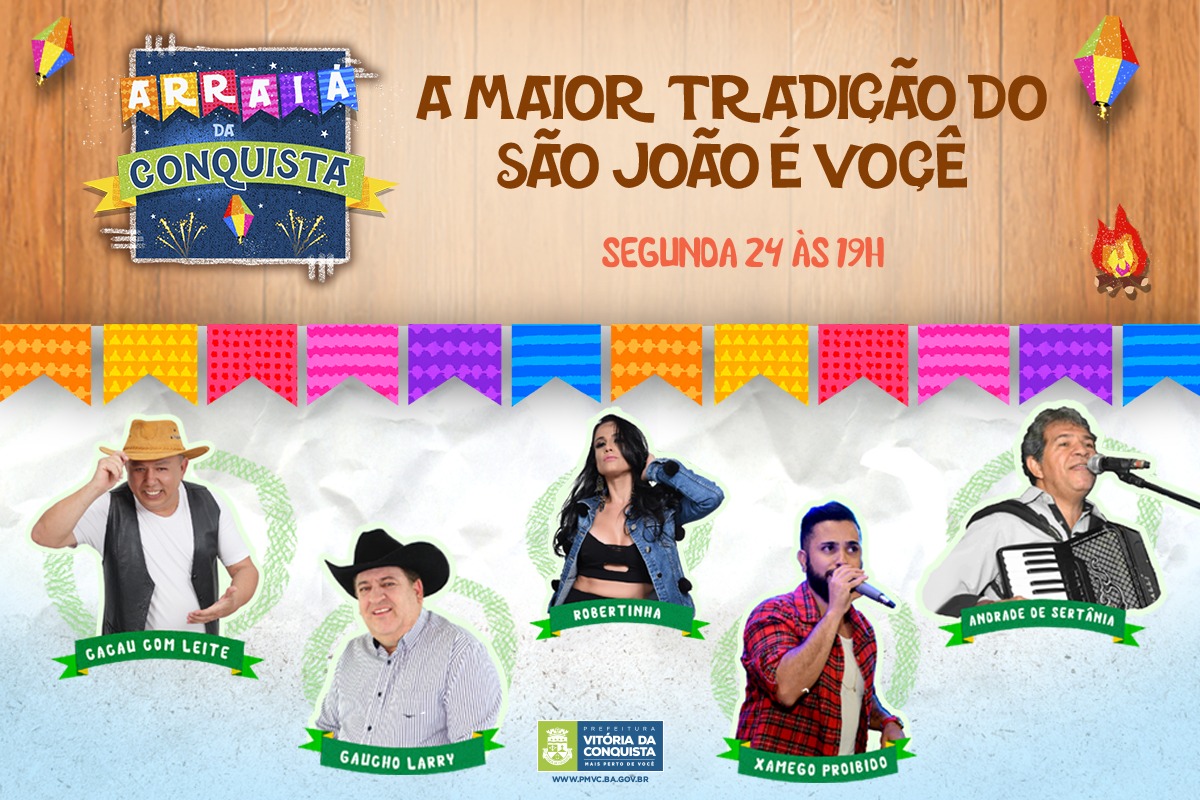 Gaúcho Larry e Banda – Com mais de vinte anos de estrada, Gaúcho Larry e banda já dividiu o palco com grandes nomes da música nacional e rodou o país levando o nome de Vitória da Conquista na bagagem. No Arraiá da Conquista vai apresentar o show do seu disco mais recente, “O melhor do forró”, com grandes sucessos dos festejos juninos.