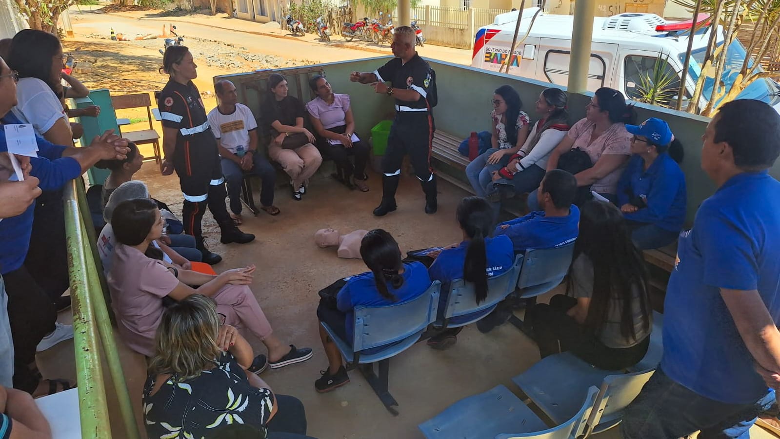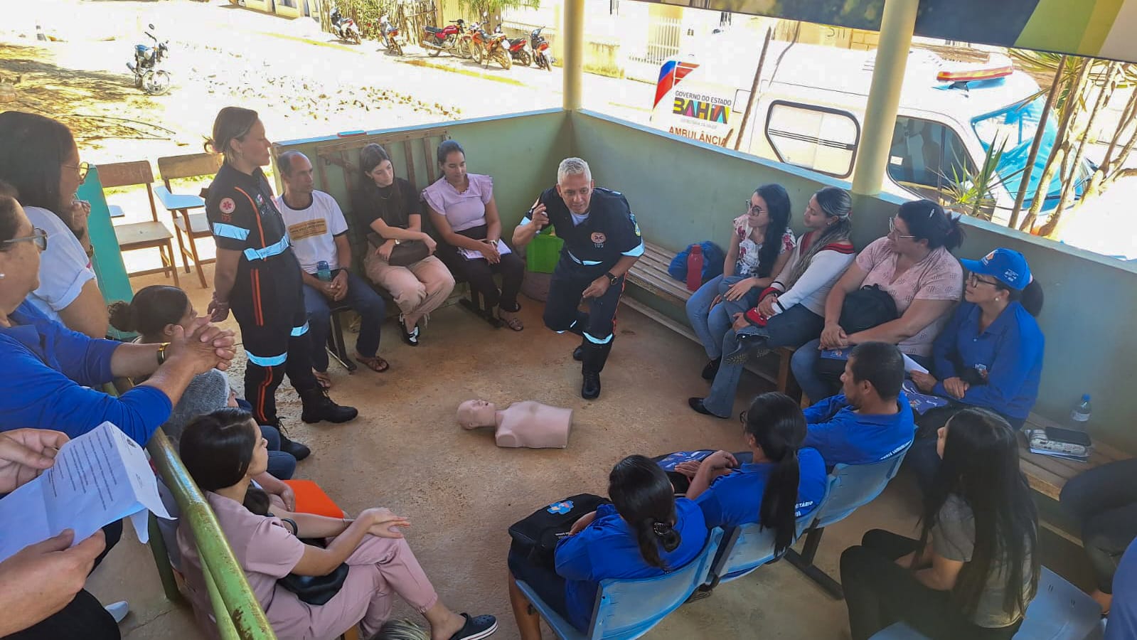 O treinamento incluiu um módulo de suporte básico de vida, onde os profissionais de saúde aprenderam a identificar e responder a uma parada cardíaca, utilizando bonecos de simulação e outros equipamentos. “Os participantes também foram convidados a conhecer a base do Samu 192, com o intuito de serem capacitados para, em situações de emergência, estarem aptos a acompanhar a ambulância até o Samu 192, caso necessário. A ambulância entregue nessa comunidade é categorizada como tipo A, sendo utilizada principalmente para transporte de pacientes, mas pode se encontrar com a nossa equipe do Samu 192 em casos de maior gravidade, garantindo um suporte mais rápido ao paciente”, explicou a coordenadora do Samu, Graciele Tavares.