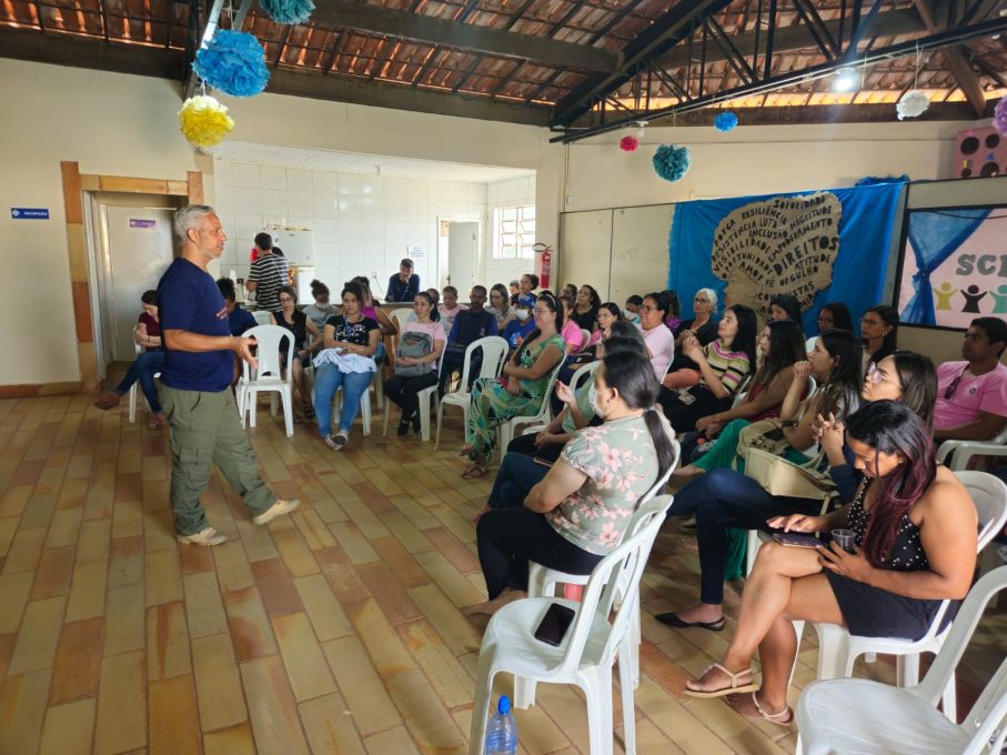 A oficina aconteceu na unidade do Cras Vila América e reuniu trabalhadores da saúde e da assistência social