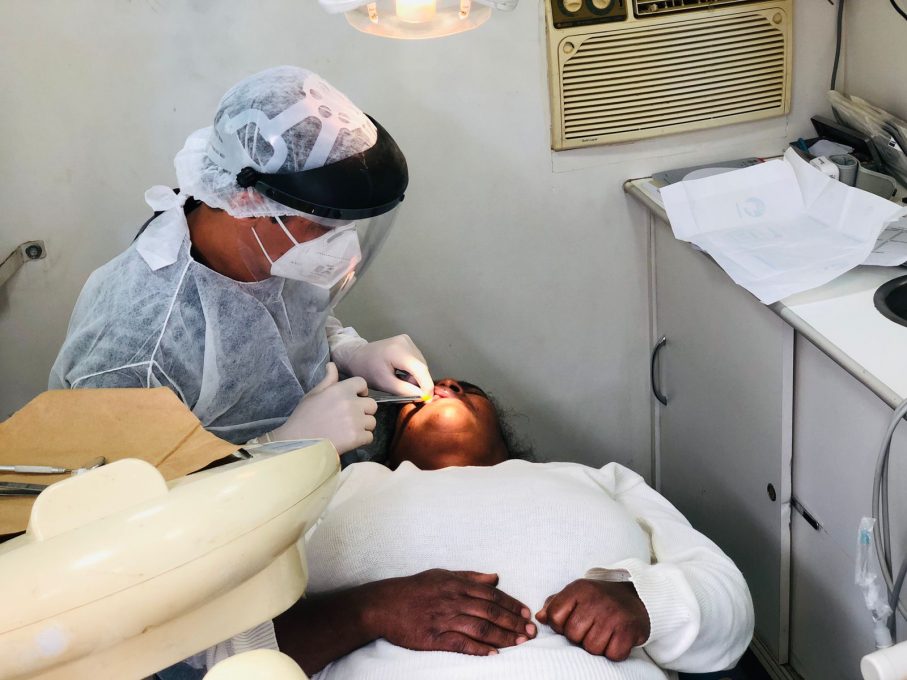 O Odontomóvel também esteve presente realizando consultas odontológicas, a exemplo de limpeza bucal, raspagem supragengival, aplicação tópica de flúor e restaurações simples.