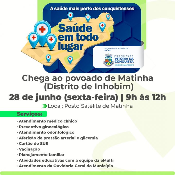 A Prefeitura de Vitória da Conquista, por meio do programa municipal Saúde Renovada, entrega, nesta sexta-feira (28), a reforma e ampliação do Posto de Saúde satélite do povoado de Matinha, no distrito de Inhobim, beneficiando mais de 500 famílias da região.