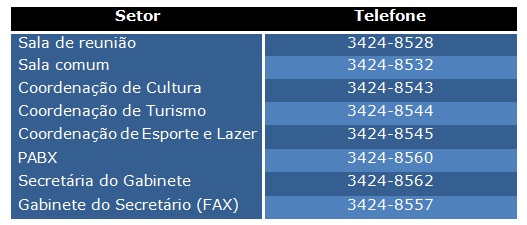 A Prefeitura de Vitória da Conquista informa que houve alterações nos números de telefones dos setores da Secretaria Municipal de Cultura, Turismo, Esporte e Lazer. Confira os novos números: