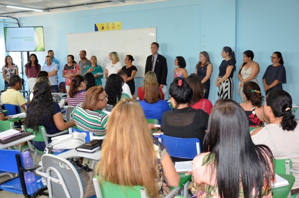 “Estamos aqui elaborando uma ação conjunta com o pedagógico, unificando as ações, falando sobre as metas gerais nossas e dando uma linha de ação unificada; onde desde o agente da portaria, que está ali, à professora, ao monitor, toda a equipe tenha como objetivo alcançar as metas estabelecidas”, explica o secretário de Educação, Esmeraldino Correia.