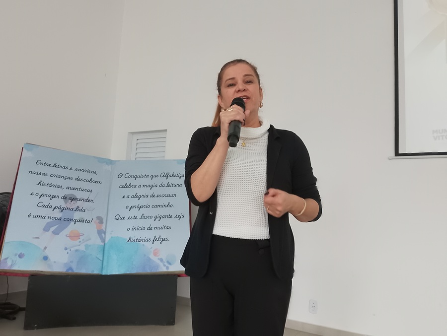A Secretaria Municipal de Educação (Smed), por meio do Núcleo Pedagógico, realizou, nesta sexta-feira (28), o evento Conquista que Alfabetiza, criado para valorizar as unidades escolares que se destacaram em 2025 nos resultados de leitura, escrita e nas avaliações externas.