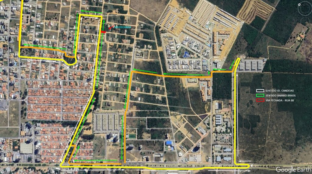 A Secretaria Municipal de Mobilidade Urbana (Semob) informa alterações na rota da linha D44, que liga o Jardim Candeias ao Bairro Brasil. Segundo a Semob, em razão do fechamento da Rua 8, por se tratar de terreno particular, no Jardim Candeias, a partir de agora, ao se deslocar sentido Jardim Candeias, quando chegar à Praça Mary Gleide, os ônibus seguirão pela Avenida Francisco Cândido Xavier até a Praça Madre Tereza de Calcutá, convergindo na Rua Vinte e Oito para acessar a Rua José Pereira de Oliveira, sentido Olívia Flores.
