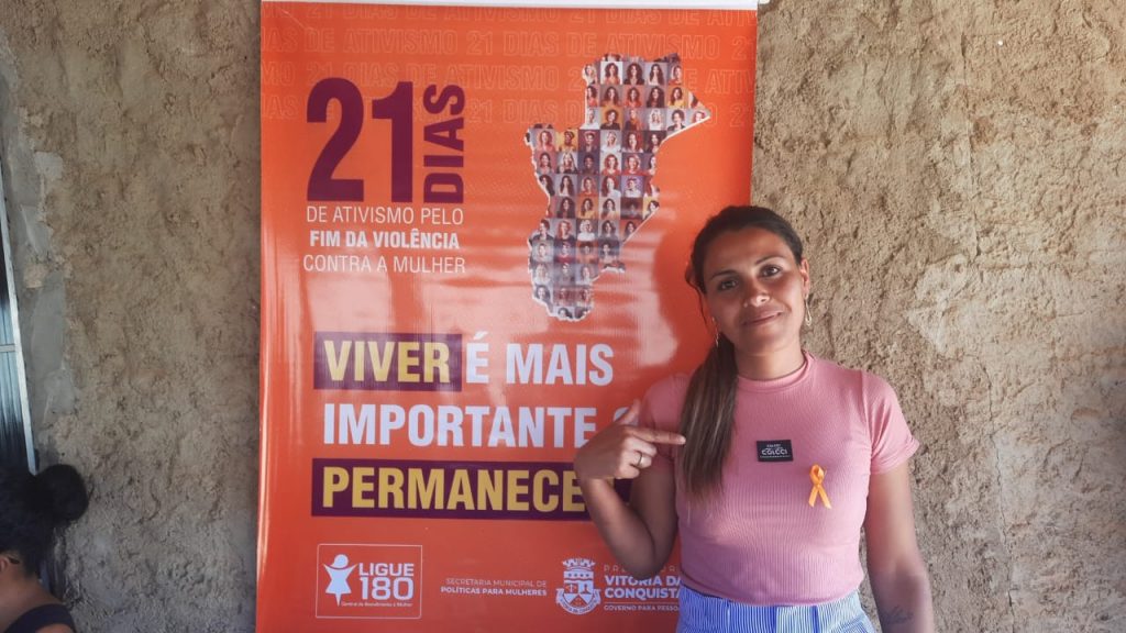 A Secretaria Municipal de Política para Mulheres (SMPM) realizou mais uma ação da campanha 21 Dias de Ativismo Pelo Fim da Violência Contra a Mulher nesta segunda-feira (27). Desta vez, a atividade aconteceu no povoado Baixão, na zona Rural do município, com apoio do Centro de Referência em Assistência Social (Cras V).