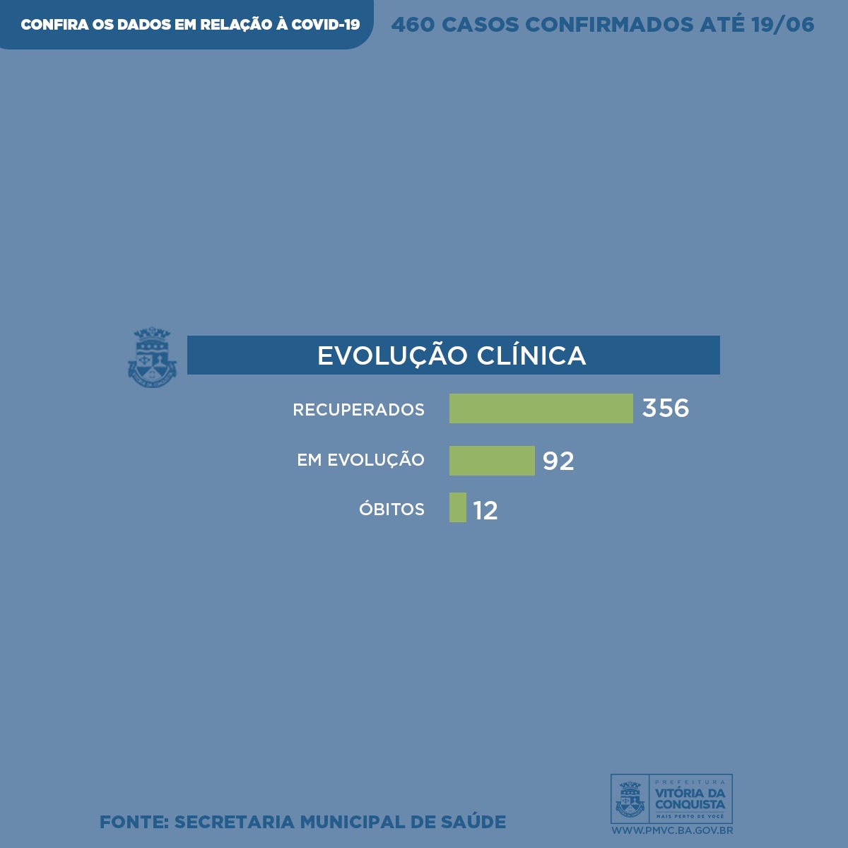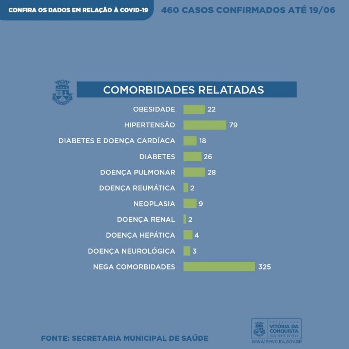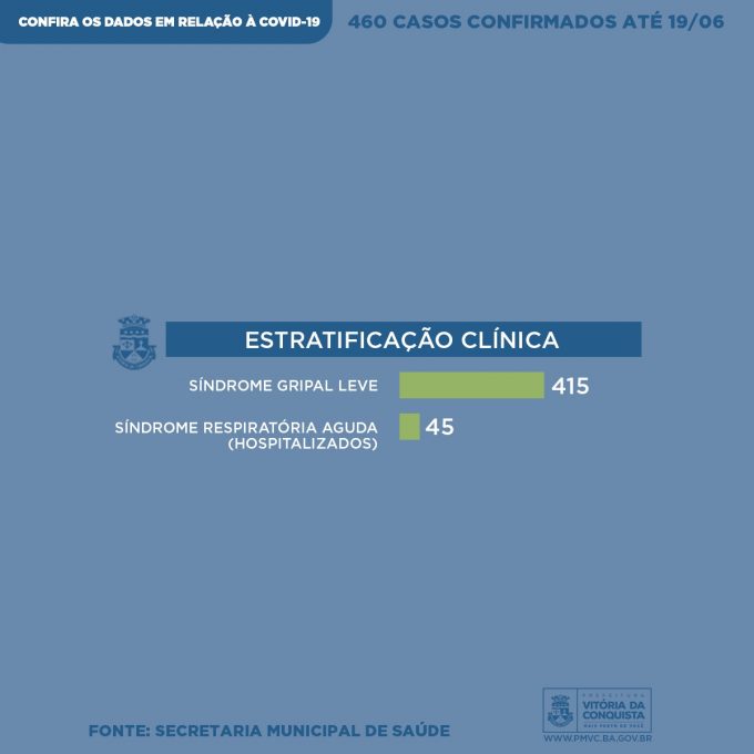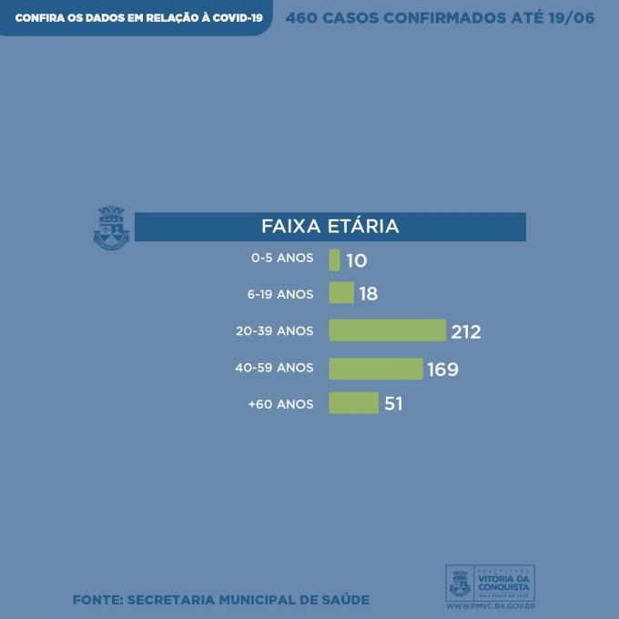 O primeiro caso de infecção pela Covid-19 em Vitória da Conquista foi confirmado no dia 31 de março e até a última sexta (19), o número de pessoas infectadas no município chegou a 460. Neste sábado (20), a Secretaria Municipal de Saúde divulga o perfil semanal, com informações mais detalhadas dos pacientes que testaram positivo para a doença, incluindo mais 119 casos confirmados durante esta semana.