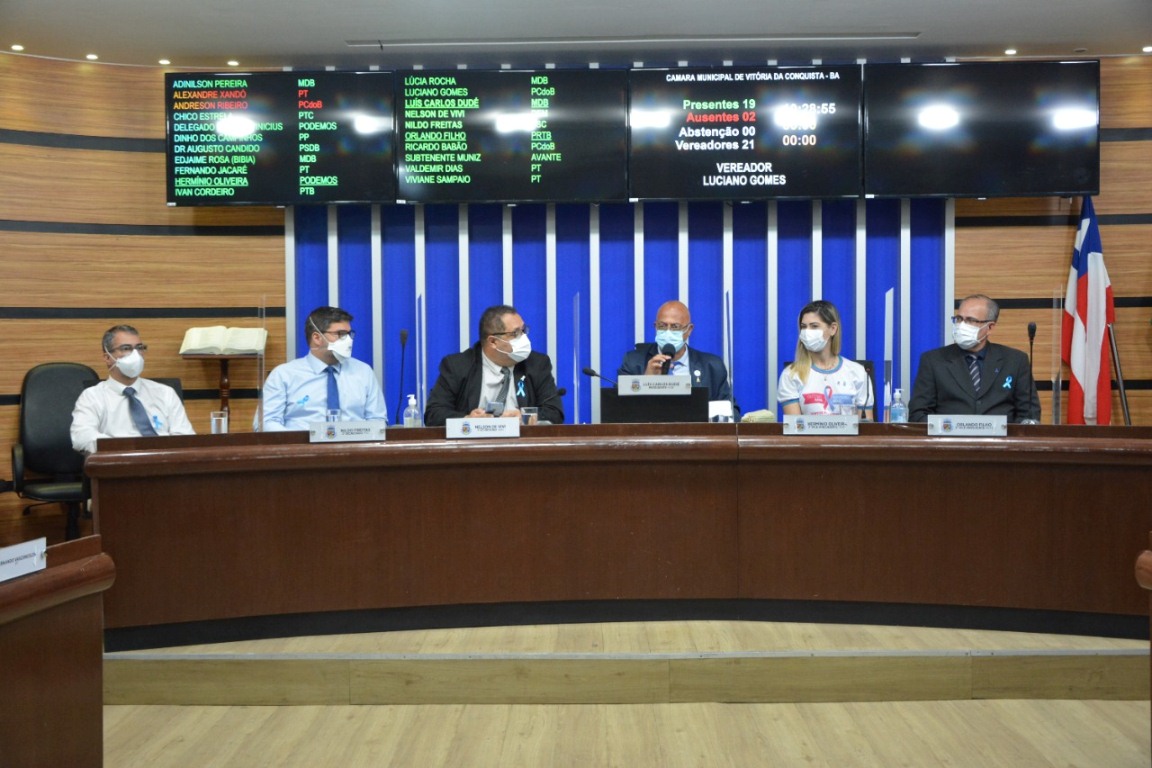 Na manhã desta sexta-feira (19), a Câmara Municipal de Vereadores realizou uma audiência especial sobre o Novembro Azul, de autoria do vereador Luciano Gomes. O evento contou com a participação da secretária municipal de Saúde, Ramona Cerqueira, representando a prefeita Sheila Lemos.
