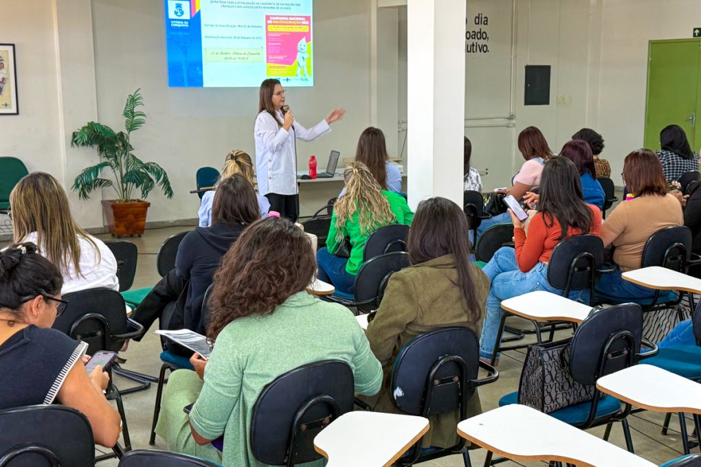 Na manhã desta segunda-feira (6), a Secretaria Municipal de Saúde, por meio da Coordenação de Imunização, iniciou a Campanha de Multivacinação 2025, com a realização de treinamento para técnicos de enfermagem e enfermeiros das unidades de saúde da zona rural e urbana.