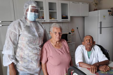 Quem aguardava a chegada da equipe em casa era o casal de idosos, seu Valdemar Moreira (92) e dona Enésia Moreira (90), moradores do povoado da Cabeceira. “Eu já estava esperando qualquer hora essa vacina chegar aqui na nossa casa. Tô me sentindo protegida agora; graças a Deus por isso! Eu agradeço demais”, contou dona Enésia.