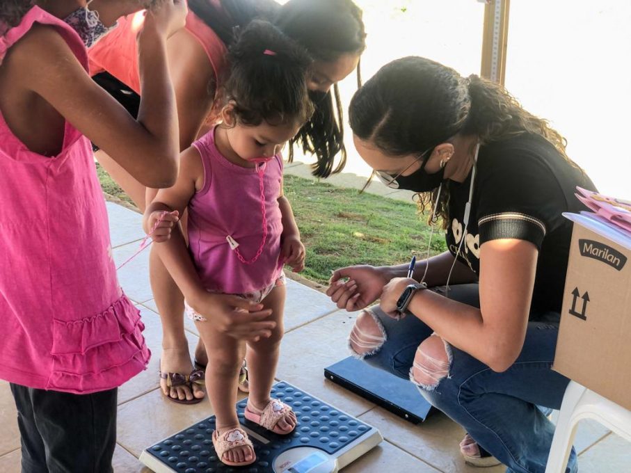 A comunidade do Residencial das Rosas, no bairro Primavera, recebeu na manhã desta segunda-feira (13), uma ação social da Atenção Básica e Vigilância Alimentar e Nutricional, com a oferta de serviços como preventivo, cadastro do cartão SUS, pesagem, suplementação de vitamina A e acompanhamento do Bolsa Família. Além de orientações sobre os cuidados preventivos contra a Covid-19.