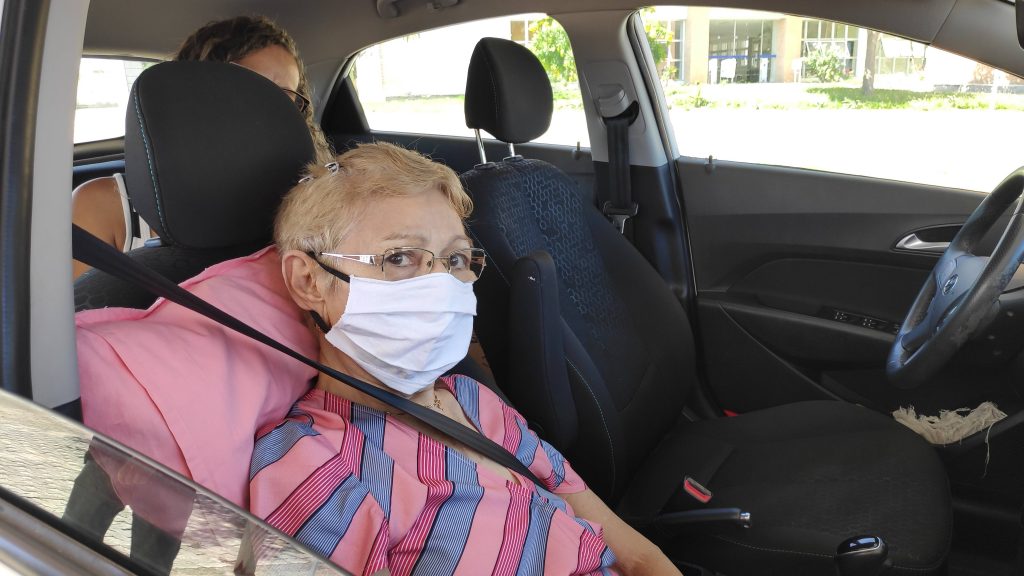 Dona Edna Soares, completou 80 anos hoje e o seu presente de aniversário foi tomar a primeira dose da vacina no drive-thru da Ufba. Ela recebeu a vacina com comemoração: “eu estou feliz, muito alegre. Estou aliviada, graças a Deus!”.