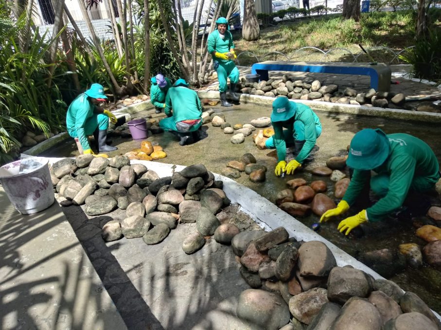 Segundo a secretária do Meio Ambiente, Ana Cláudia Passos, além dos lagos visíveis, há também um tanque subterrâneo com mais de 120 mil litros de capacidade, que é utilizado para manter a reposição da água nos lagos. “A limpeza envolve uma cuidadosa e gradativa transferência dos peixes de um tanque para outro, para que, após o esvaziamento dos lagos, a remoção do lodo e a escovação das pedras, eles sejam recolocados em água limpa”, explicou.
