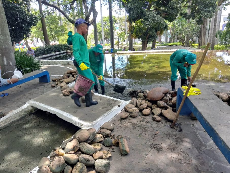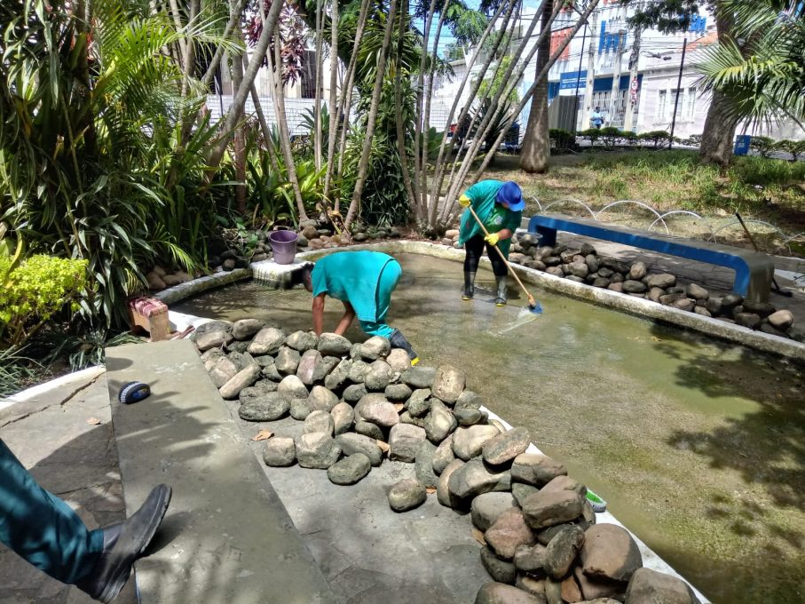 A Secretaria Municipal de Meio Ambiente (Semma) deu início, nesta terça-feira (21), à limpeza dos lagos e dos tanques da praça Tancredo Neves como parte dos preparativos para o Natal Conquista de Luz deste ano.