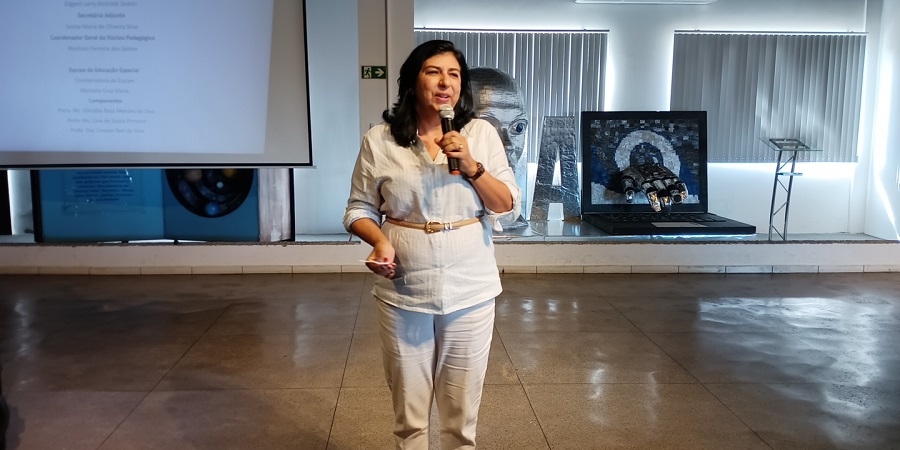 No segundo momento, foi apresentada uma orientação de como proceder quando há uma incidência muito grande de crises e colapsos nervosos dos alunos em sala de aula. “Pelo estresse do convívio social, da hiperexposição, os estímulos que são muitos, a criança em casa convive com duas, três pessoas, mas chega ao ambiente escolar, vai para uma sala de 25, 30 alunos, e na hora do intervalo se depara com um grupo de 250 a 300 alunos. Então isso gera um estresse, uma sobrecarga muito grande”.
