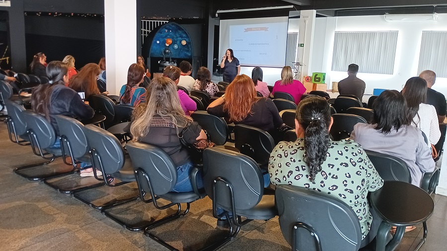 O Núcleo Pedagógico da Secretaria Municipal de Educação (Smed) está realizando a oficina de matemática “Com Lúdico se Aprende” aos professores do primeiro ao quinto ano do Ensino Fundamental I da Rede Municipal. O evento, que acontece no foyer do planetário Prof. Everardo Públio de Castro, teve início no dia 30 de setembro e segue até amanhã (4 de outubro).