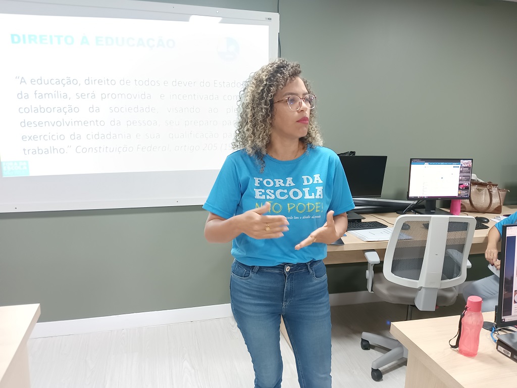 A coordenadora do Busca Ativa, Natilaane Brito, explicou que a primeira parte da formação foi para tratar do direito à educação garantido na Constituição Federal e no Estatuto da Criança e do Adolescente (ECA). “Falamos como vem sendo realizado esse trabalho intersetorial aqui no município. E na segunda parte apresentaremos um caso fictício de abandono escolar. E vamos dialogar a partir da experiência deles nas escolas, como poderíamos intervir nessa situação e depois vamos de forma prática lançar o caso na plataforma”.
