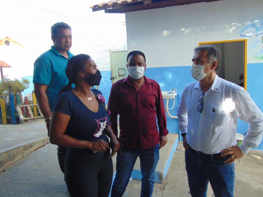 A diretora Margarete, o coordenador de Infraestrutura, Maximiliano Alves, o vereador Dinho e o assessor Célio.