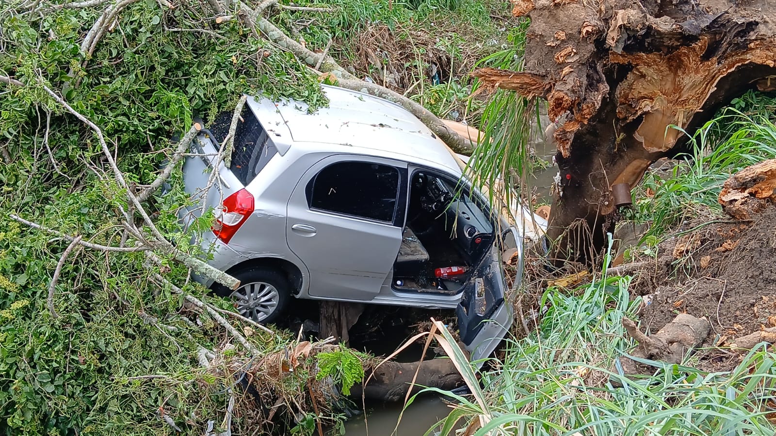 Na noite deste domingo (23), um veículo caiu no canal de escoamento pluvial da avenida Caracas no bairro Felícia, mas o incidente não teve relação com a chuva. A Sesep e outros órgãos da Prefeitura estão prestando apoio ao proprietário do carro na tentativa de retirá-lo do local.
