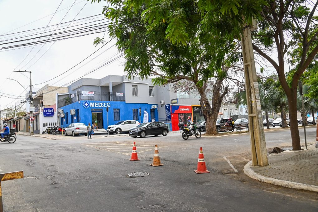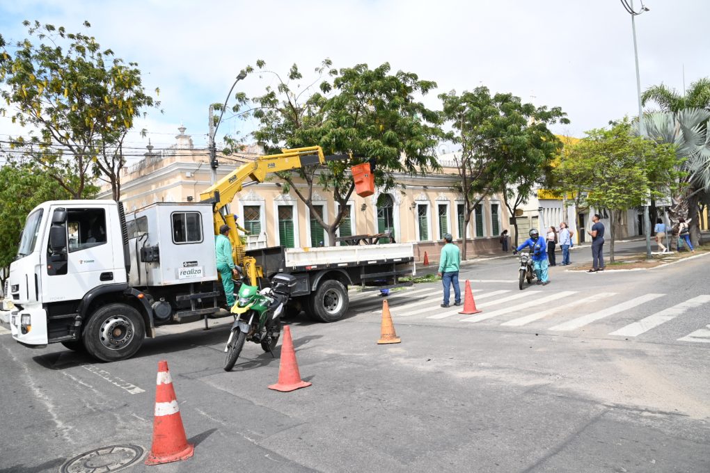 O trabalho se estende à lateral da Prefeitura, na Rua Coronel Gugé, onde o trânsito também está bloqueado até a finalização do trabalho.