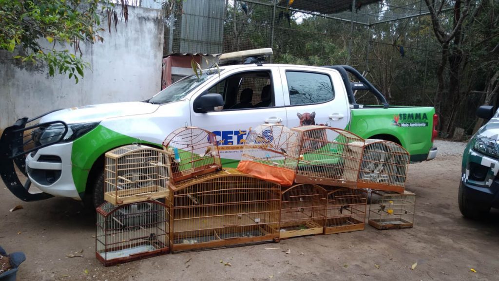 Fiscais da Secretaria Municipal do Meio Ambiente (Semma), com apoio do Batalhão de Rondas Especiais (Rondesp), da Polícia Militar e do Grupo de Apoio ao Meio Ambiente (Gama) da Guarda Municipal, apreenderam na manhã deste domingo (25), 50 pássaros silvestres e 13 bolsas gaiolas usadas para o transporte das aves.