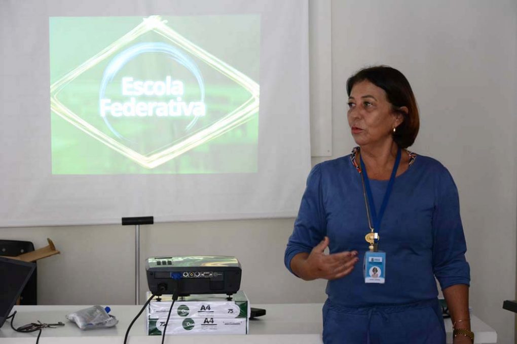 Ela explicou que em cada secretaria há um agente responsável por mobilizar outros servidores a participar da formação, que se encontra disponível na Trilha Básica de Conhecimento. Trata-se de uma lista de cursos básicos sobre noções de gestão pública, que são disponibilizados pela Escola Federativa.