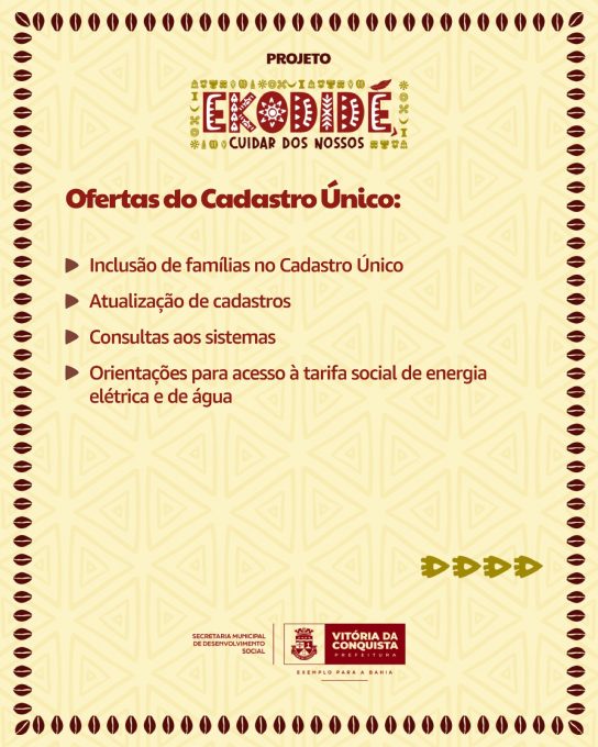 A Prefeitura de Vitória da Conquista, por meio da Secretaria Municipal de Desenvolvimento Social (Semdes), realiza nesta sexta-feira (31), a segunda edição do projeto Ekodidé: Cuidar dos Nossos, que tem como objetivo promover atividades comunitárias em terreiros de religiões de matriz africana. A ação acontece das 14h às 17h, na Casa de Caridade Nhá Chica, localizada na Rua G, nº 5, Lote 7, Sítio Esperança (próximo à Uesb).