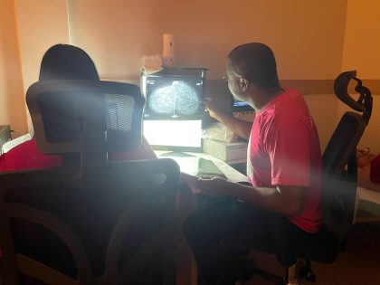 “Nessa fase realizamos o exame de ultrassom das mamas, que é o exame complementar da mamografia. Todas as mulheres que estão aqui são mulheres que tiveram exames de mamografias alterados – BIRADS 0, 4 e 5 – e a ultrassom é realizada para haver a reclassificação dessa mulher e, a partir daí, se for necessário, o mastologista já realiza a biópsia local”, explicou Fernanda Tamboni, enfermeira representante da Diretoria de Projetos Estratégicos da Sesab.
