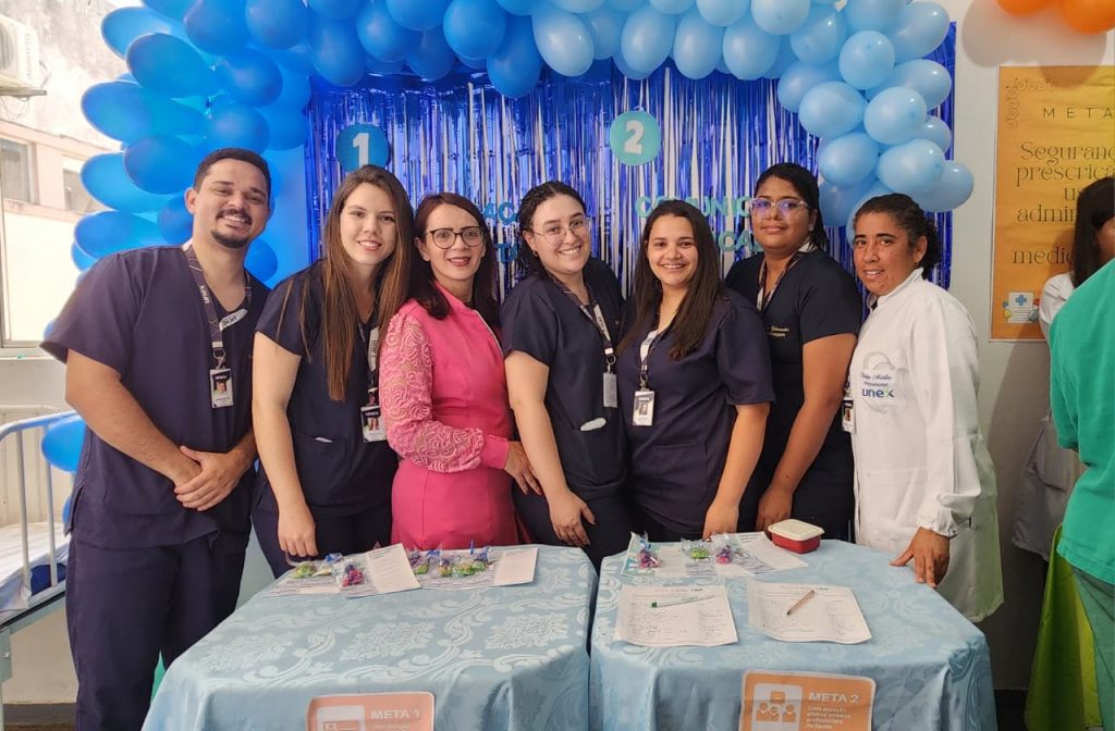 Durante o evento, mesas temáticas e interativas, montadas em parceria com os estudantes de Enfermagem da Unex, foram instaladas pelos corredores da unidade. Também foi montado um espaço instagramável para valorizar a equipe de saúde, essencial para a promoção da segurança do paciente. Promovido pelo Núcleo de Segurança do Paciente (NSP) da Fundação Pública de Saúde de Vitória da Conquista, a ação foi preparada para chamar atenção para as 6 metas de segurança do paciente: identificação correta do paciente, comunicação efetiva, segurança na prescrição e administração de medicamentos, cirurgia segura, higienização das mãos e redução do risco de queda e lesão por pressão.