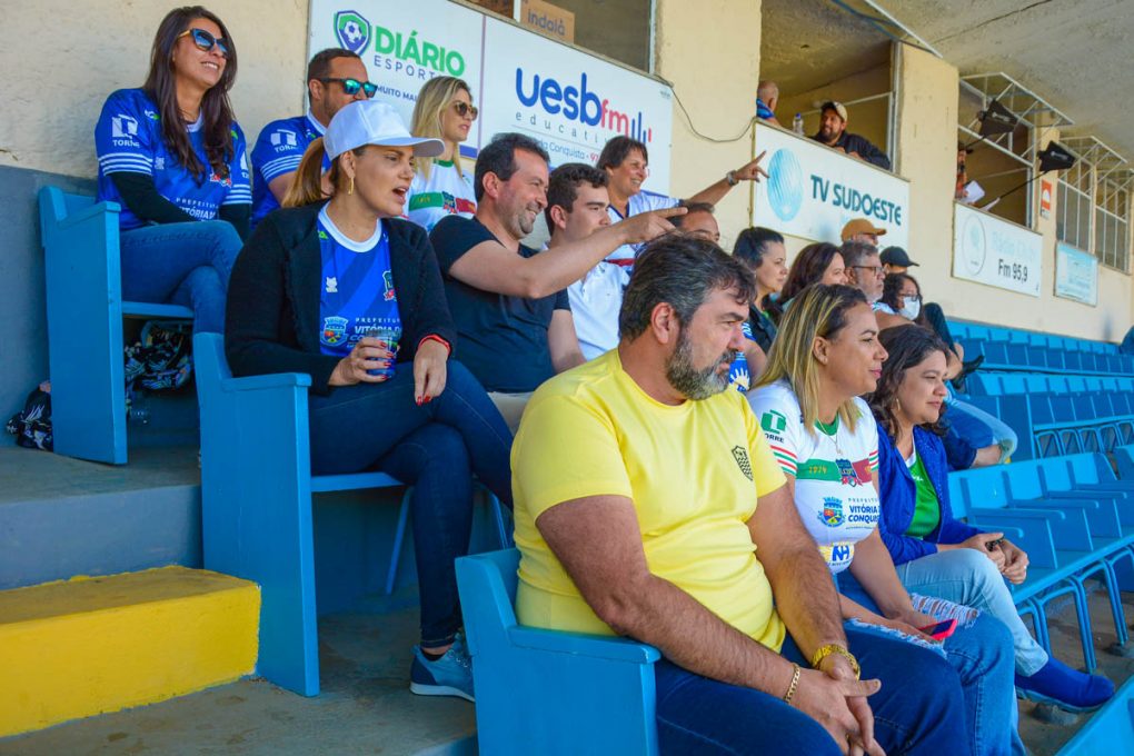 A prefeita Sheila Lemos, acompanhada de membros do Governo Municipal, prestigiou a partida e no final do jogo agradeceu pessoalmente aos jogadores e à comissão técnica pelo empenho na partida e pela campanha que fazem no Intermunicipal. “O jogo teve muitos momentos emocionantes. Gostei do que vi, vocês jogaram bonito. Teve erros na arbitragem e fomos prejudicados, mas isso acontece no futebol, então é bola pra frente. Não abaixem a cabeça. Vamos pensar no próximo jogo e, com certeza, voltar de lá com a vitória, porque estamos em primeiro lugar e vamos continuar dessa forma”, disse.