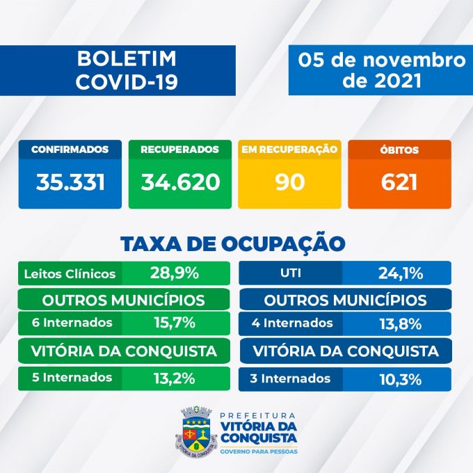 De acordo com boletim da Secretaria Municipal de Saúde (SMS), 18 novos casos de Covid-19 foram confirmados em Vitória da Conquista nesta sexta-feira (5), totalizando 35.331 desde o início da pandemia.
