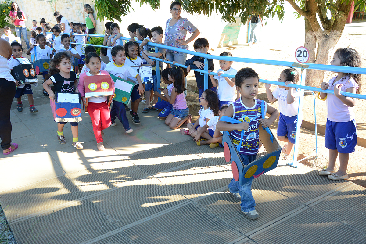 A caixa de papelão virou um carro; o pregador com palito de picolé, um avião; o cabo de vassoura com a meia, um lindo cavalinho; e tantos outros brinquedos que a imaginação permitiu. Todas as turmas participaram das brincadeiras. Ou seja, mais de 430 alunos matriculados. Todos entraram nesta brincadeira e a imaginação virou realidade.
