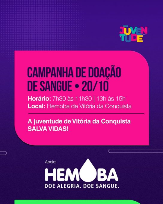 20/10 – Campanha de doação de Sangue: “A juventude de Vitória da Conquista salva vidas”