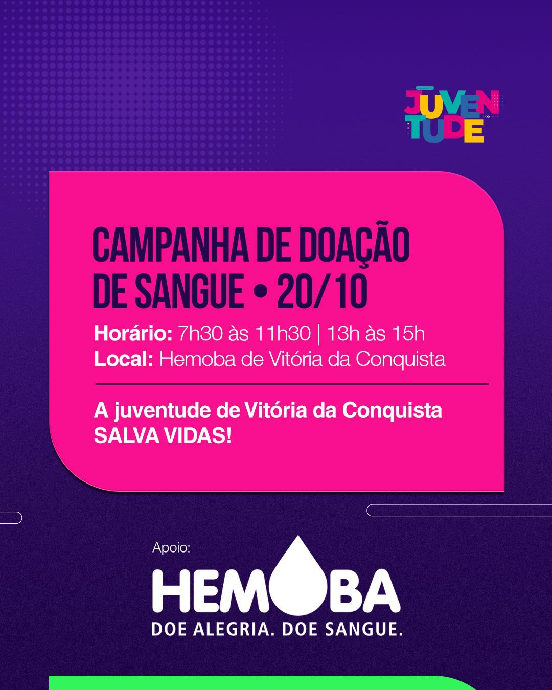 20/10 – Campanha de doação de Sangue: “A juventude de Vitória da Conquista salva vidas”