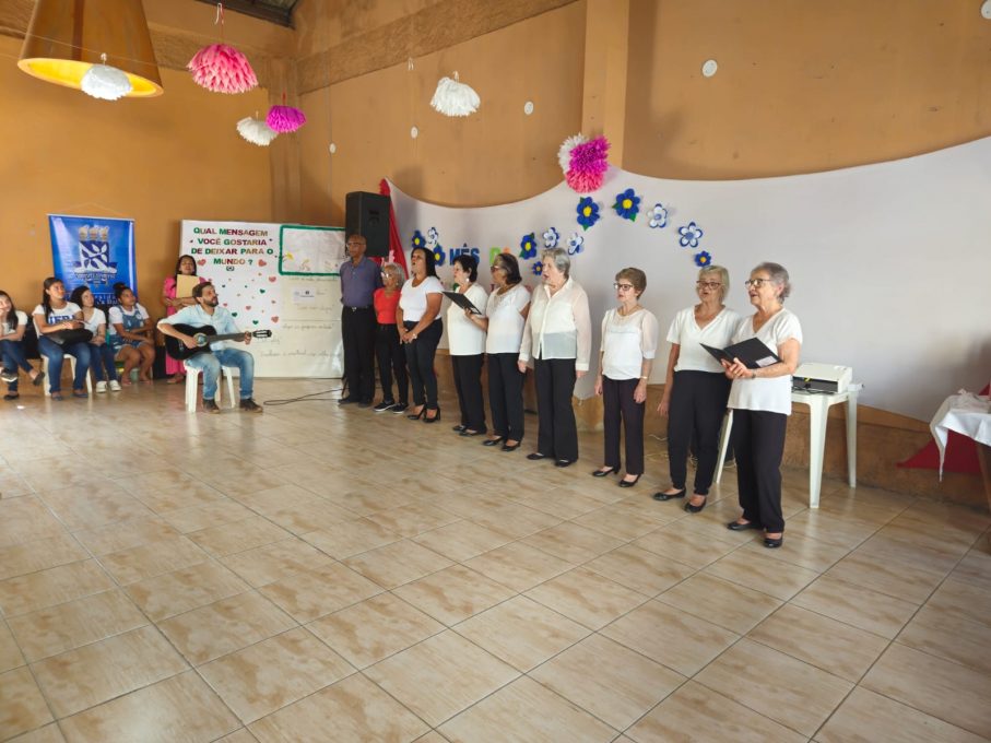 Nesse encontro, os idosos puderam apresentar algumas das atividades que eles desenvolvem ao longo do ano, como a apresentação do coral, que cantou a música “É preciso saber viver” e do grupo que realizou uma dança inspirada na chegada da primavera.