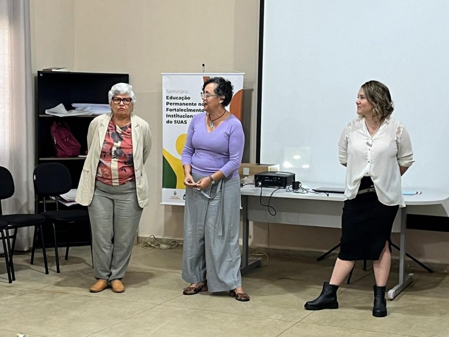 Desde a primeira etapa, o seminário tem sido mediado pelas professoras Abigail Torres e Yheda Gaioli, que são referências nacionais na área de Assistência Social. Além disso, o encerramento contou com a presença da professora Ana Lígia Gomes, que também é referência nacional no assunto e tem experiência com gestão de informação e de benefícios eventuais e socioassistenciais.