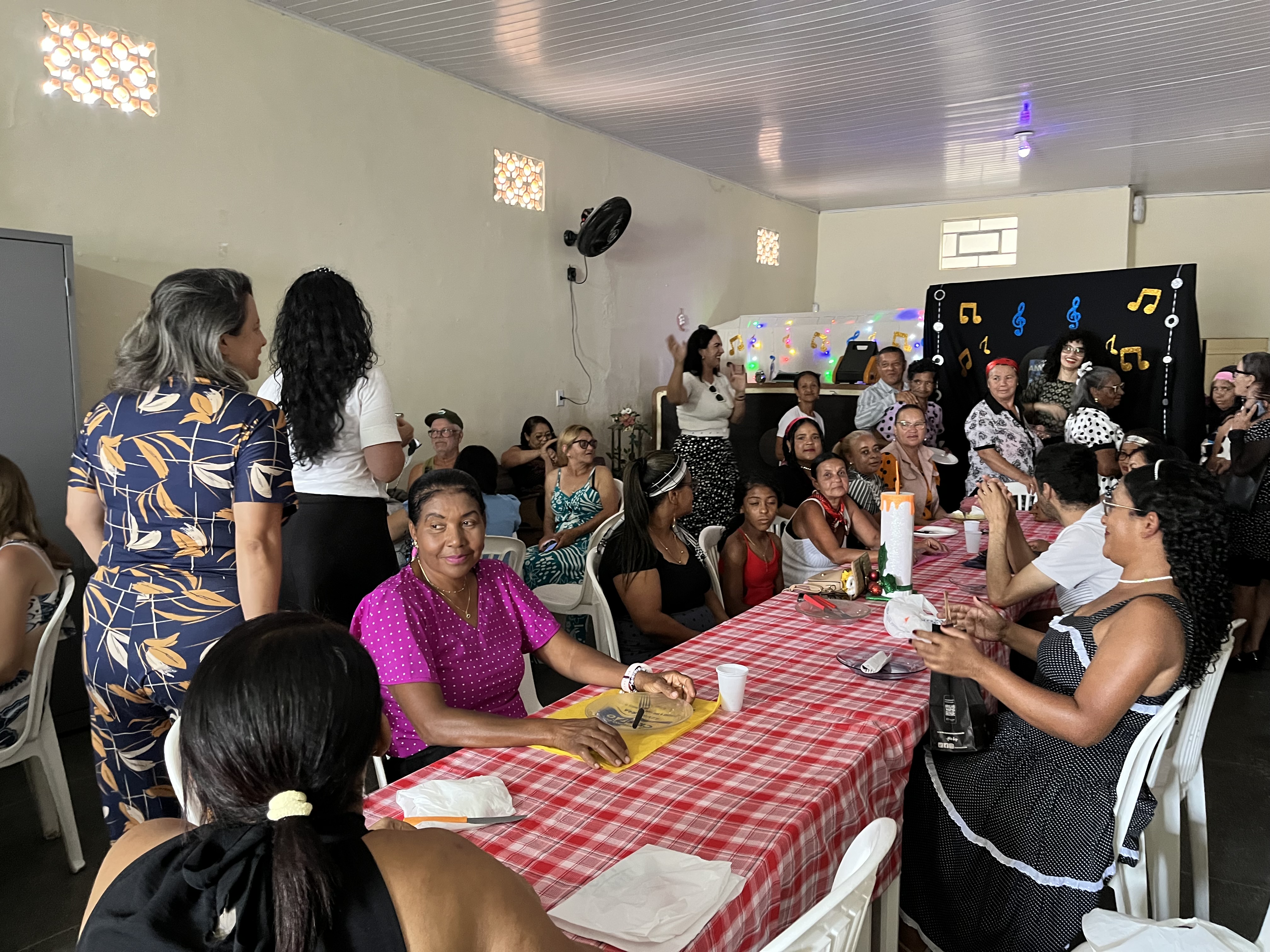 As atividades tiveram início no Cras Nossa Senhora Aparecida, que reuniu trabalhadores da unidade e cerca de 45 usuários do grupo intergeracional do Serviço de Convivência e Fortalecimento de Vínculos (SCFV). O encontro foi marcado por um almoço temático inspirado nos anos 1960, com decoração e músicas da época, além de momentos de escuta e troca entre os participantes.