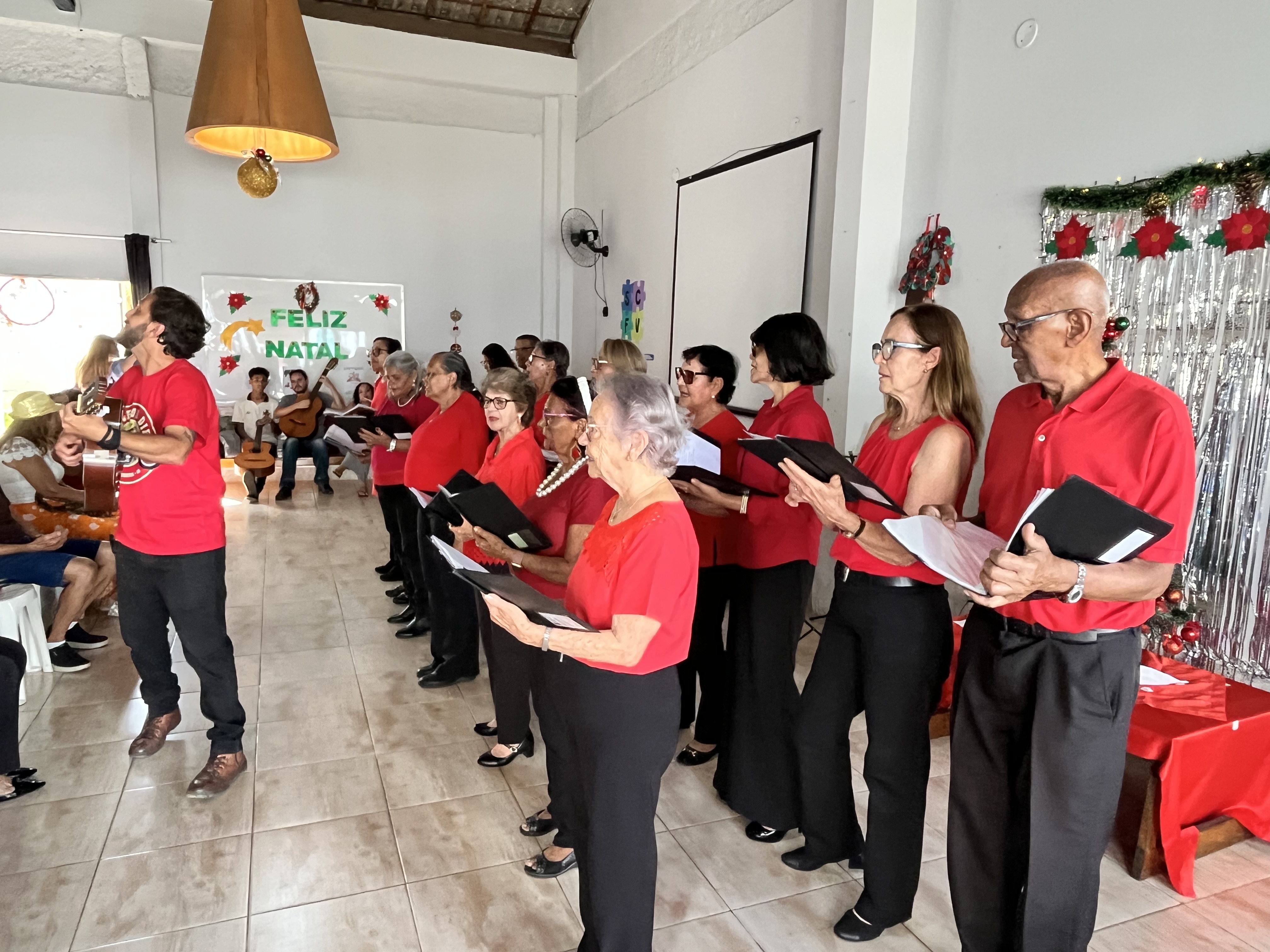 O clima de celebração também marcou o Natal no Centro de Convivência do Idoso (CCI), que reuniu cerca de 115 participantes. A programação contou com apresentações de teatro, coral, flauta e dança, proporcionando momentos de alegria, integração e valorização do envelhecimento ativo.