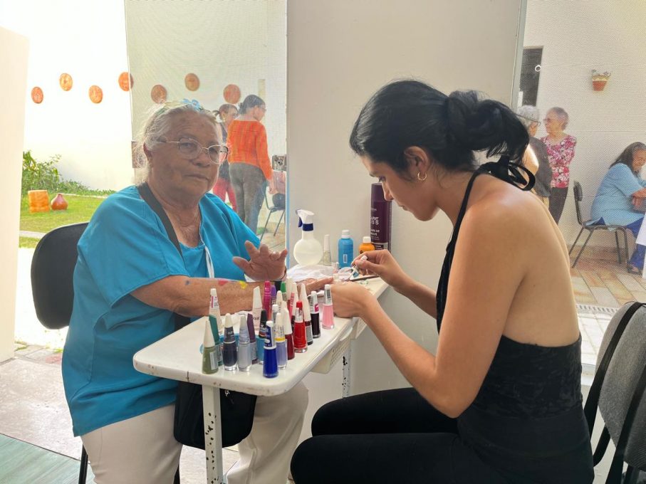 Quem também gostou do clima de festa do CCI foi a professora aposentada Maria Helena Bonfim, que aproveitou a atividade para fazer as unhas e utilizar os serviços de saúde. “Atualmente, eu me dedico mais a esse grupo aqui do Centro de Convivência do Idoso. Aqui nós temos professores de primeira categoria, para diversas atividades disponíveis. Isso aqui é continuação da minha casa, eu estou aqui de segunda a sexta. É um pedaço do céu na terra”, afirmou dona Helena.