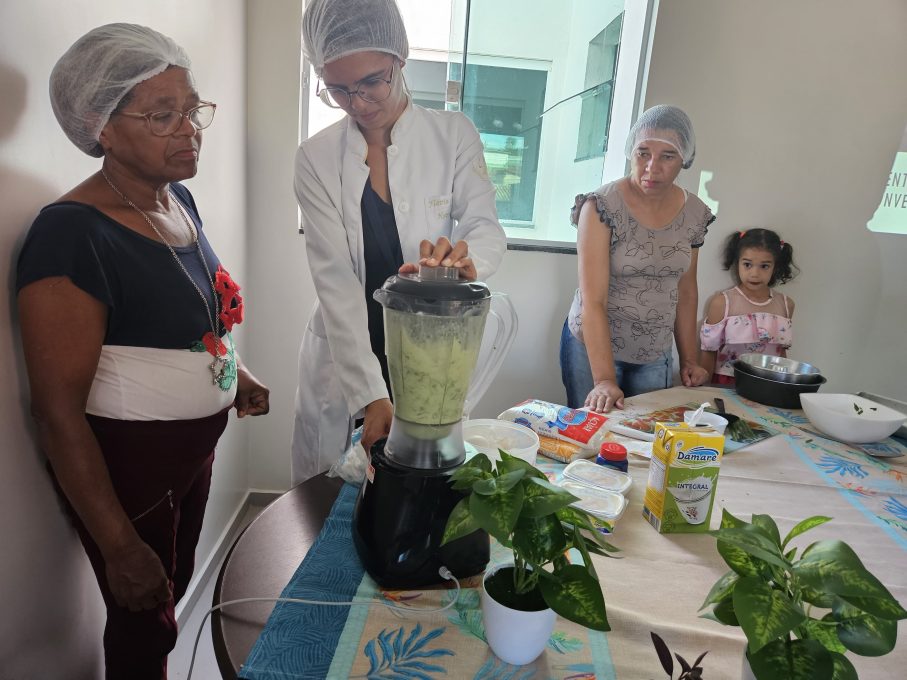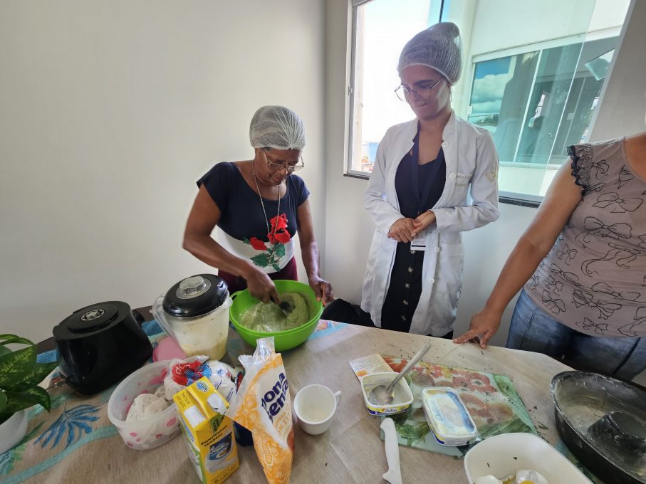 A oficina é realizada em articulação com a Secretaria Municipal de Saúde (SMS). A nutricionista da SMS, Flávia Chaves, foi responsável por conduzir o preparo da receita. Ela explicou que primeiro foi realizado um ciclo de oficinas com receitas utilizando Ora-pro-nóbis e agora a planta escolhida foi o Capim-santo. “Queremos mostrar para essas pessoas que é possível utilizar essas plantas em receitas saborosas e nutritivas. Hoje fizemos um bolo de Capim-santo que é simples e saboroso”, pontuou Flávia.
