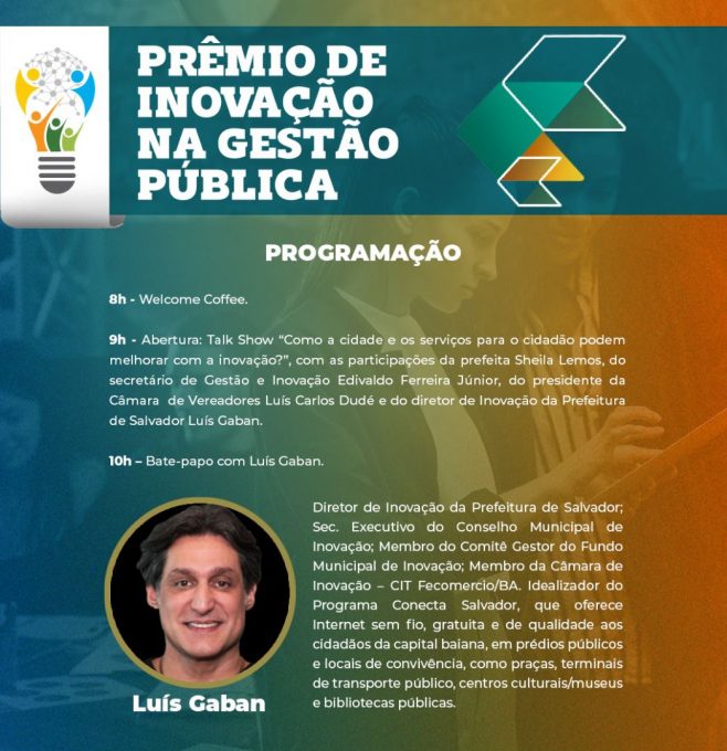 O lançamento do concurso ocorrerá amanhã, às 8h, no cinema Centerplex do Boulevard Shopping, com a presença da prefeita Sheila Lemos. O evento terá um talk show sobre os benefícios da inovação para melhoria das cidades e da vida dos cidadãos e um bate-papo com o diretor de Inovação da Prefeitura de Salvador e idealizador do Programa Conecta Salvador, Luís Gaban. Os servidores interessados em participar da cerimônia devem se inscrever preenchendo os dados do formulário – são 140 vagas – clicando aqui.
