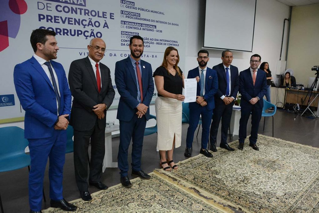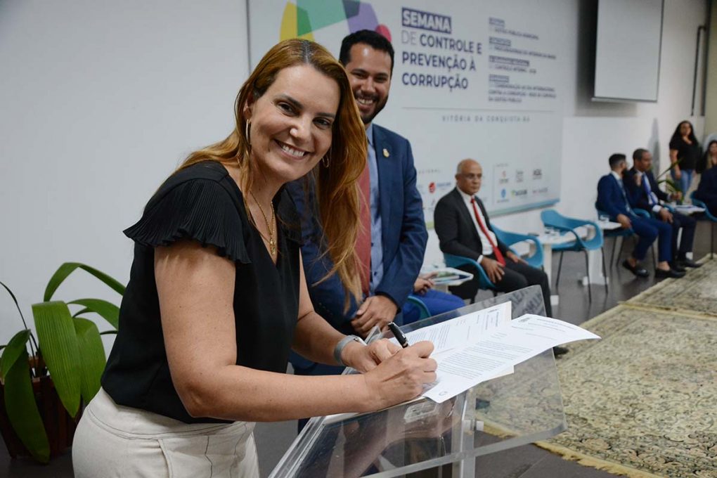 Antes de dar as boas-vindas aos participantes, a prefeita Sheila Lemos assinou o Projeto de Lei nº 31, de 5 de dezembro de 2023, que cria o Fundo Municipal de Prevenção à Corrupção (Funprec). Na mensagem enviada aos vereadores, em que defendia a aprovação da proposta, Sheila se valeu de argumentos como o destaque alcançado pelo município junto aos órgãos de controle da União, que concederam a Vitória da Conquista premiações nas áreas de Ouvidoria e Correição, além de distinções quanto ao nível de transparência do Poder Executivo local.