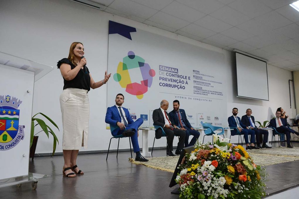 Antes de dar as boas-vindas aos participantes, a prefeita Sheila Lemos assinou o Projeto de Lei nº 31, de 5 de dezembro de 2023, que cria o Fundo Municipal de Prevenção à Corrupção (Funprec). Na mensagem enviada aos vereadores, em que defendia a aprovação da proposta, Sheila se valeu de argumentos como o destaque alcançado pelo município junto aos órgãos de controle da União, que concederam a Vitória da Conquista premiações nas áreas de Ouvidoria e Correição, além de distinções quanto ao nível de transparência do Poder Executivo local.
