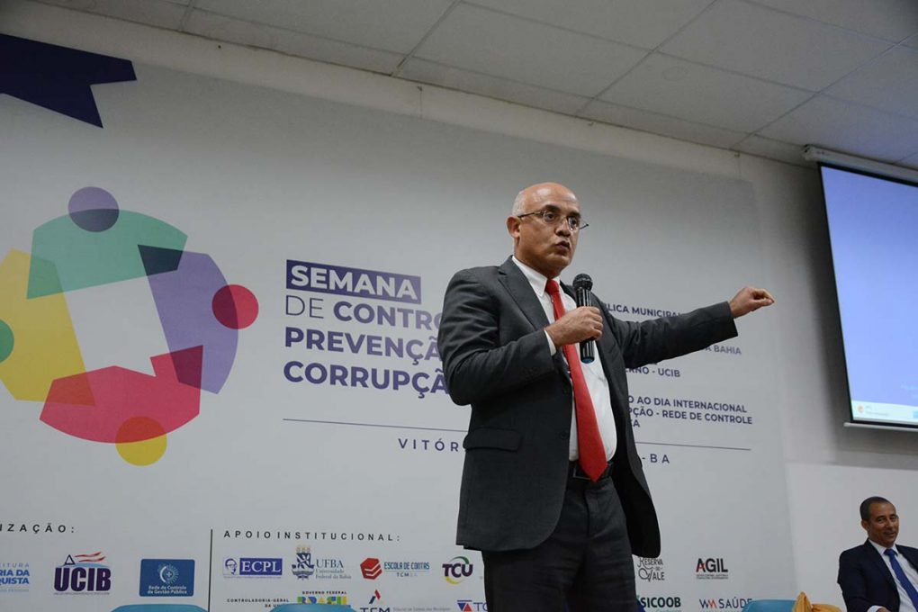 Em sintonia com o que disse a prefeita Sheila Lemos, sobre a disposição de compartilhar os conhecimentos com os visitantes, o presidente da União das Controladorias do Estado da Bahia (UCIB), Maike Oliveira, recomendou que as pessoas inscritas nas atividades da Semana de Controle e Prevenção à Corrupção tomem nota dos conteúdos e ponham em prática o que aprenderam. “Não adianta nada aprender um monte de coisas, voltar para as nossas cidades e não replicar nada”, comentou Maike, que também é controlador geral do município baiano de Itaberaba.
