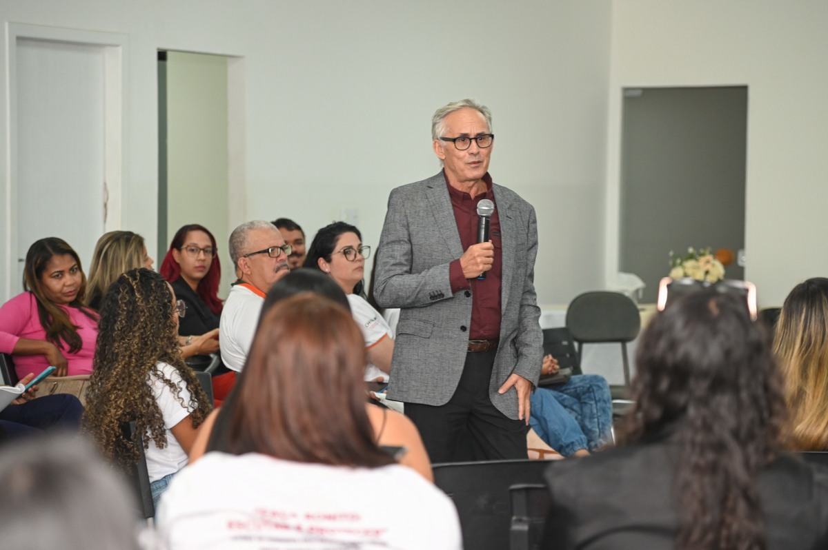Sheli Santos é educadora social há 14 anos e sempre participa dessas formações. “A gestão da Prefeitura Municipal tem a preocupação de capacitar os servidores para atendimento em todas as áreas, especificamente no enfrentamento da violência contra crianças e adolescentes. Eu vejo sempre de forma positiva, porque impacta diretamente no trabalho de quem está na ponta, que é quem está realmente acolhendo e atendendo as crianças em vulnerabilidade. Todos os momentos de capacitação eu considero de extrema importância, porque eles conseguem reduzir não só os impactos negativos da criança que já chega em estado de vulnerabilidade, como também a forma técnica de se atender corretamente a cada usuário que chega pra gente”, comentou a servidora.