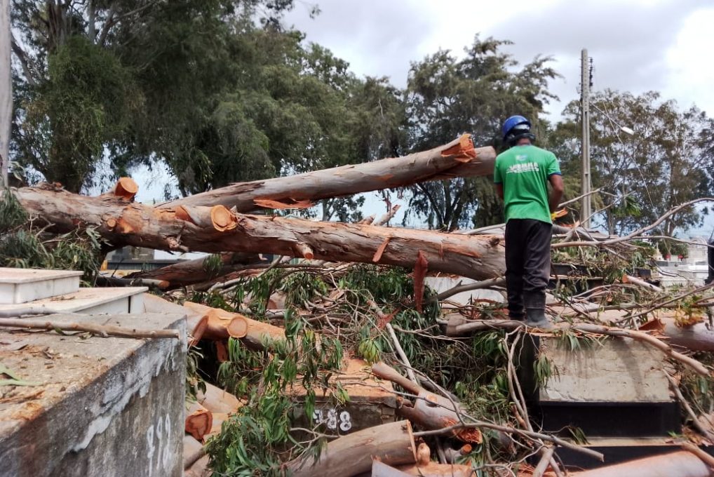 Além disso, a equipe técnica está avaliando a situação das árvores em toda a cidade – já foram mais de 320 nos últimos sete dias – para a realização dos procedimentos corretos. Todos os eucaliptos que estão próximos a muros e residências passarão por esta análise e a depender das condições serão retirados.